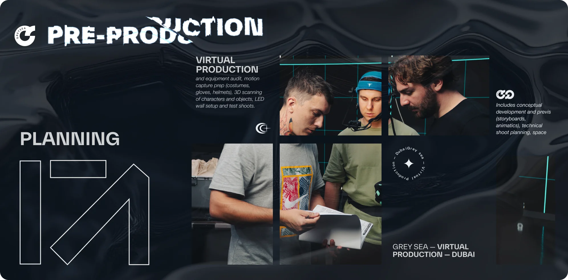 Grey Sea also acts as a full-cycle production partner, supporting projects from initial idea development and visual concept creation through shooting supervision, 3D scanning, motion capture integration, VFX execution, and final post-production.