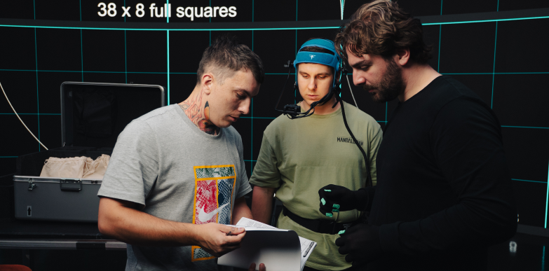 Cinematic-quality body, face, and hand motion capture using professional tracking systems for animation, VFX, and virtual production.